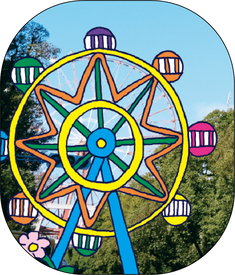 アミュプラザ鹿児島のシンボルである観覧車は、愉快なキャラクターたちのお気に入りのアトラクション。